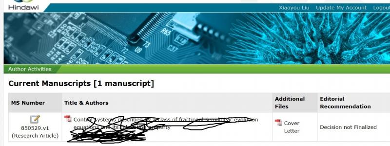 五月底在这个收费杂志投了一篇文章。在状态跟踪页面怎么看不到投稿日期。投稿后状态一直没有改变过。从没在收费杂志上投过稿,所以不太懂。想问问有没有在这个杂志上投稿的朋友。在这个杂志上投稿,稿件的状态变化顺序有那些?谢谢呀。