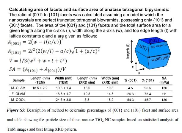 小弟是研究TiO2晶面暴露的,但是遇到一难题,就是如何计算晶面暴露比例.看了很多文献,知道可以根据XRD数据来算暴露面比例公式,通过谢乐公式可算出[001]方向厚度d,但是其中有些不解,文献中说跟据半峰宽算[100]方向平均边长L,但是具体公式我还没找到,所以忘大侠们进行指点,最好列出具体公式和详细说明!
