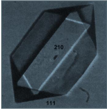 下图中晶体中的(100)晶面是那一个,和(210)连接的大面应该是(200)吗?那位给指点一二,我要找这个晶体的(100)晶面,先谢了! [ Last edited by wjh522996 on 2012-6-7 at 10:54 ] |