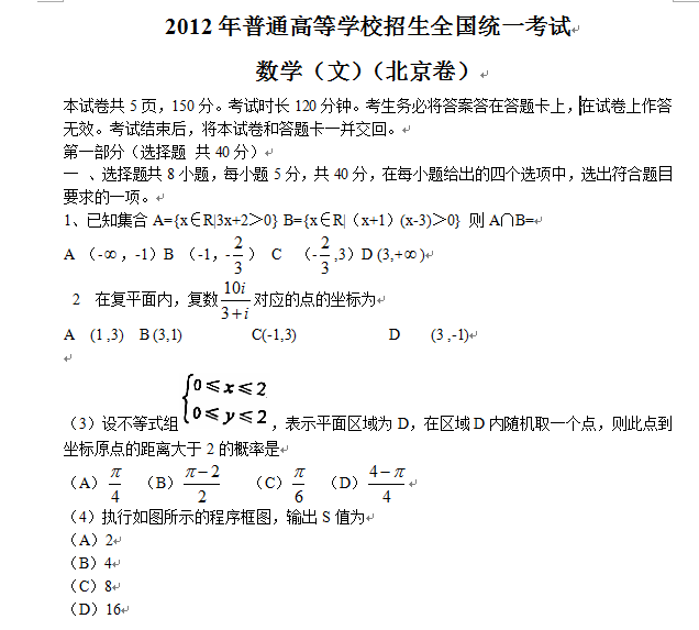 本内容由用户自主发布,如果其内容涉及到知识产权问题,其责任在于用户本人,如对版权有异议,请联系邮箱:xiaomuchong@tal.com - 附件 1 : 2012年北京高考文科数学真题(word).doc