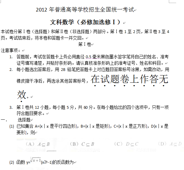 【真题资源】2012全国高考卷试题-全国卷大纲版