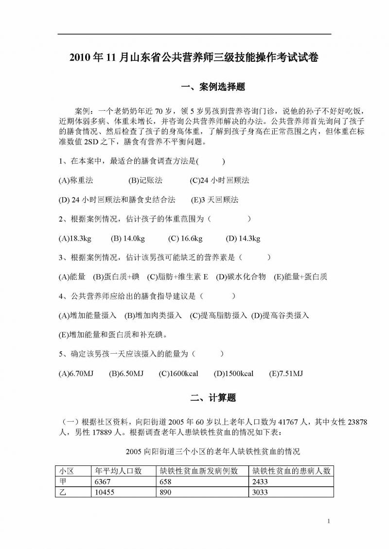 【试题资源】公共营养师考试试卷、答案及复习材料