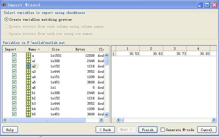 我用的是MATLAB2007A 编写好M文件运行后 想提取绘制的图片中数据。我在Current Directory里保存成.mat文件后打开发现我计算的精度比较大,而数据表中只显示前256个点的数据 后面的没显示 。想请好心人告知怎样操作才能把所有的数据提取出来。谢谢! |