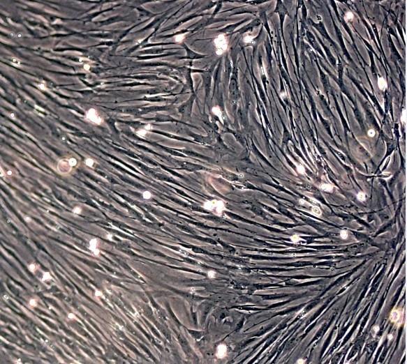 各位大侠,我曾经从中华鳖外周血分离外周血单核细胞细胞,取中间薄雾层,贴壁4h后,将培养基中的未贴壁细胞转入一个T25的培养瓶内,旨在看淋巴细胞在体外能不能继续分裂,结果我也没有观察了,一直放在培养箱内,也没有长细菌,也没有长霉菌,一个月了,我想将其丢掉,结果神奇的发现,有一瓶细胞竟然长出成纤维样细胞,下图是10X10倍显微镜下观察结果 谁能告诉我这是什么细胞,如何证明? |