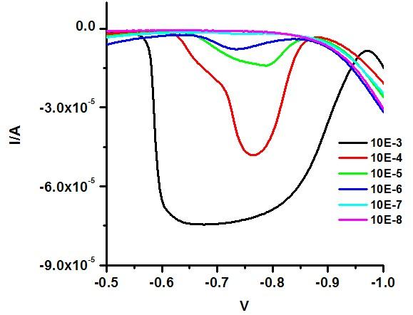 用伏安法测待测物浓度时,随着浓度增加,峰电位会出现偏移,这如何解释?