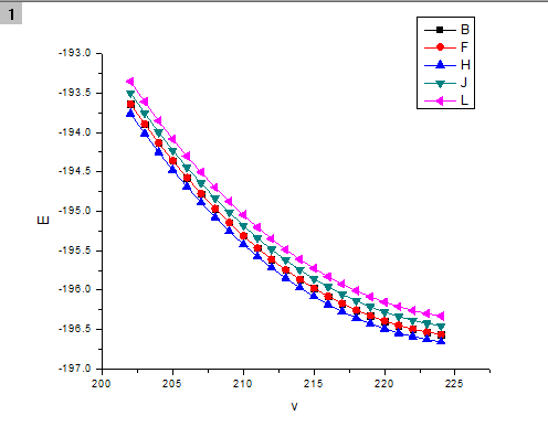 vasp计算的体积是212.72,E-V曲线走势是如图所示,帮忙分析一下是什么原因?是不能在这些位置取代?还是这些位置取代不稳定?(图示是Ti6Ru2O16的E-V 只是Ru的位置不同而已,)请各位大侠帮忙分析一下?