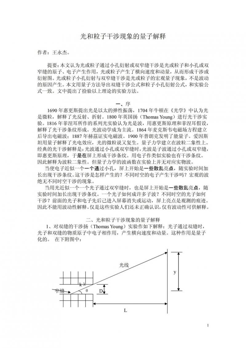 光和粒子干涉现象的量子解释 再更改版 已有8人参与