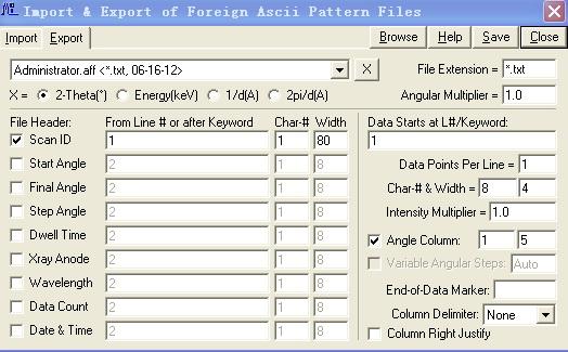 XRD数据是txt格式的文本文件,角度和强度之间好像是tab键,导入时不会设置角度和强度的开始列数和总的列数。显示Invalid Starting Angle.