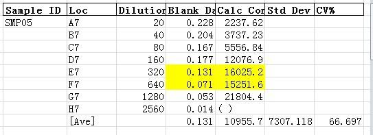 ELISA检测血清样品中蛋白含量。常规过程。 同一样品不同稀释倍数得到结果差别较大,并且是随着稀释倍数越大越大,根据标准曲线计算出的结果就越大,这是什么个情况? PS:之前也有碰到过,以为是稀释时混合不够均匀的问题,后一段时间没做,这次的结果又出现在这个问题。之前做倍比稀释,这次是3倍稀释。 Sample ID Loc Dilution Blank Data Calc Conc SMP02 A4 20 0.386 3378.65 B4 60 0.32 7141.63 C4 180 0.194 10934.7 D4 540 0.108 17991.7 [Ave] 0.252 9861.67 百思不得其解啊。。谁能给些意见建议,先在此谢过啦~ |