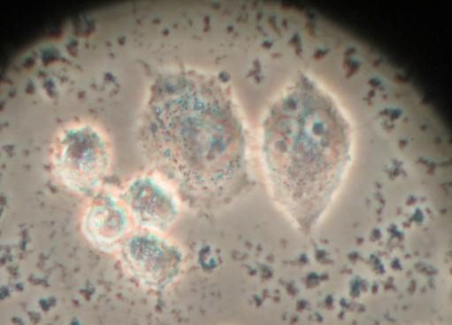 你设什么细胞呢?貌似细胞快裂解了。培养几天,会变浑浊吗?