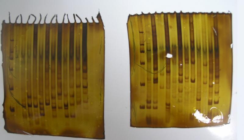 4.后面还附了一张银染图,感觉不太清晰,条带也不多,和别人论文里的比感觉差好多,请帮我看看吧,多谢了!
