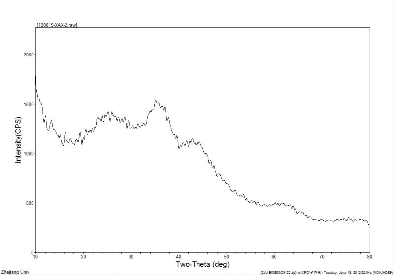 是有一点很小的峰,不过估计可以忽略了吧,和之前不用溶胶凝胶法做的同样的催化剂比,xrd图基本可以视为无定型了。