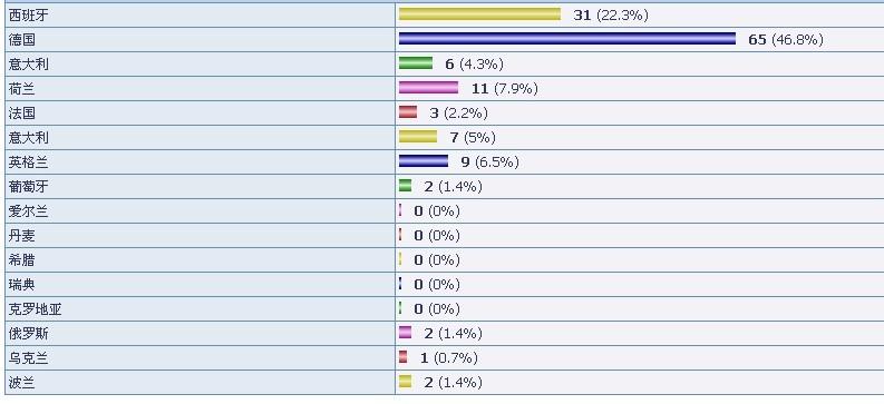 从欧洲杯开始前,我就认为葡萄牙有机会创造奇迹。而在帖子中几乎没有人会认为葡萄牙夺冠。现在葡萄牙到四强了,我更加的相信在C罗的带领下会夺冠,虽然这个很纠结,因为我总想着有一天是魔力鸟带领着葡萄牙夺冠。哎有机会为啥不争取。葡萄牙加油!穆尼里奥带领葡萄牙世界杯夺冠吧。 在帖子的投票中葡萄牙仍然是2票支持。 |