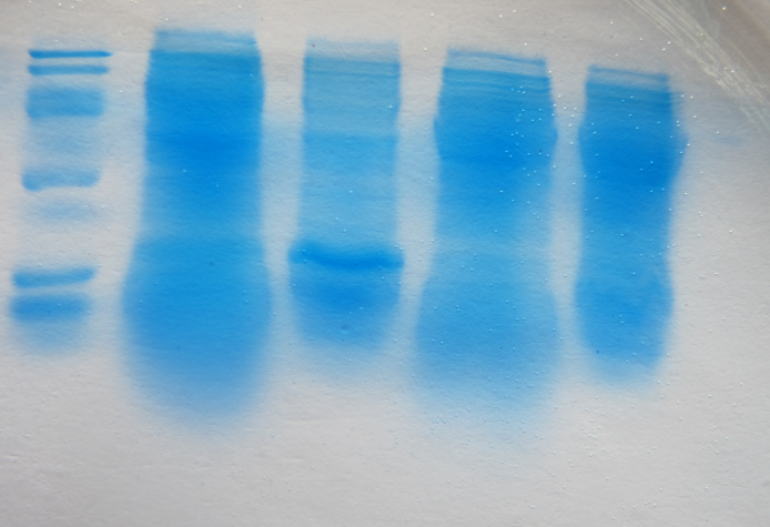 就要被蛋白质电泳(SDS-PAGE)灭了,有图有真相,望高手指点