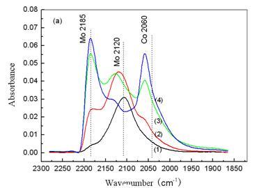 | CO在钴钼催化剂上的化学吸附峰位置随钴钼金属含量升高向高波数移动(2106-->2118-->2126-->2134 cm-1),而另外吸附在Mo上的CO特征峰峰位不变,室温吸附CO,透射光谱。请问高手这个怎么解释? |