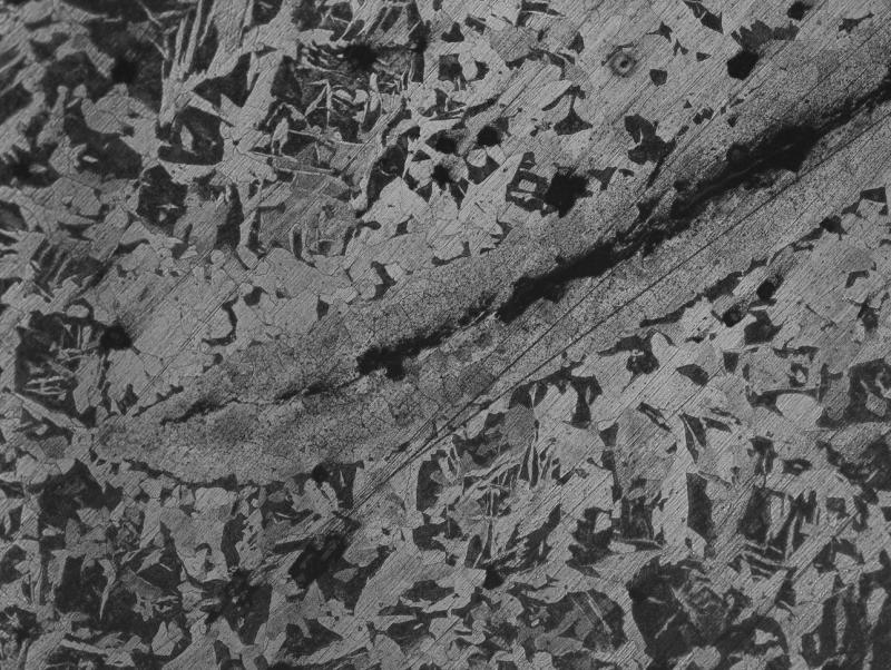 该钢为40Cr,下料后感应加热,然后锻了一下就裂了,裂纹状况和组织如图,请帮忙分析一下原因。组织为100倍图。
