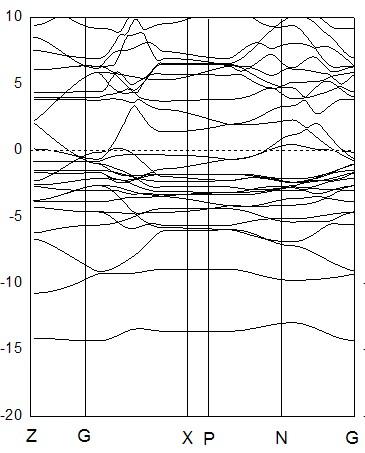 亲们,帮我看看我的能带图,我的特殊k点标注的对吗?我感觉有点不对,别人的能带图的特殊k点标注线一般对应能带的拐点,而我的却没有,请问亲们,我标的有问题吗?谢谢了!(特殊k点我是按照MS里面的,见下第一个图,我的能带图见下面第二个图) |