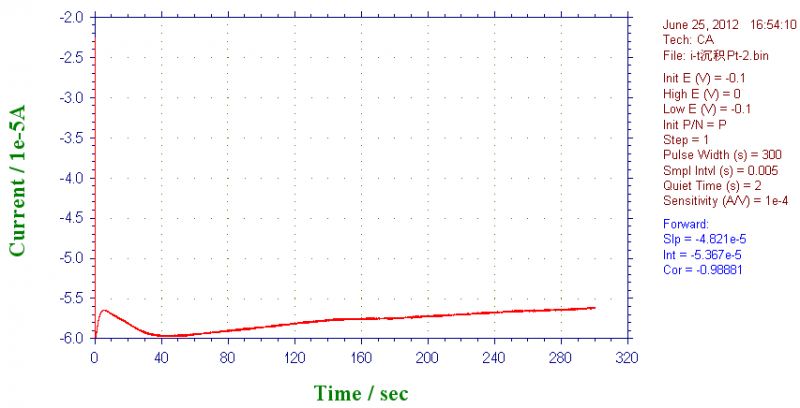 我的是电沉积Pt,只能沉积300s左右啊~~电流是从-2到-6,变小的,你们也是这样的啊?