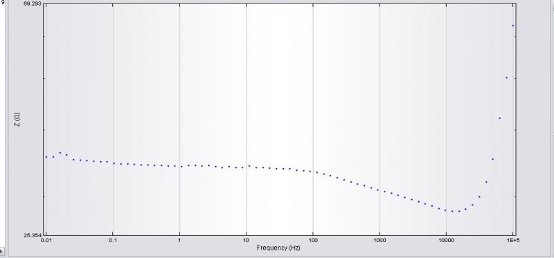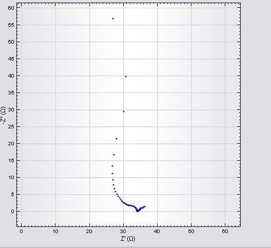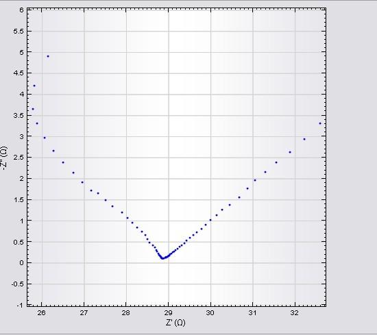 阳极为工作电极,阴极为对电极,参比为AgCl,试过很多次,都是这个样子,高频区散点很多,不成圆弧,越到低频,越趋于稳定