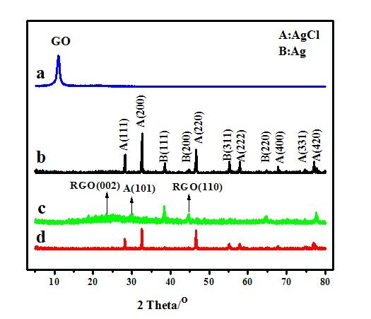 | it is found that GO (curve a) exhibits a strong peak at 10.02° corresponding to the (002) inter-planar spacing of 8.2 Å, which suggests that graphite has been successfully oxidized by Hummer’s method.(Guo, Y.; Guo, S.; Ren, J.; Zhai, Y.; Dong, S.; Wang, E. ACS Nano 2010, 4, 4001-4007.) |