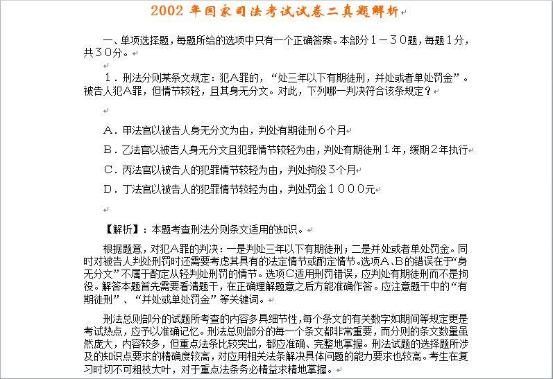 【真题资源】2002年-2008年国家司法考试试卷一真题解析