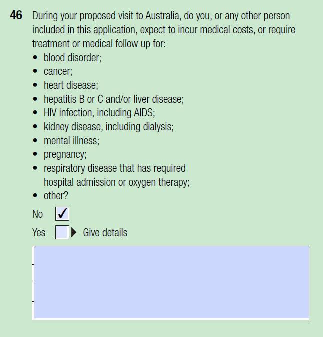 442签证的147表中的Part I – Health and character details