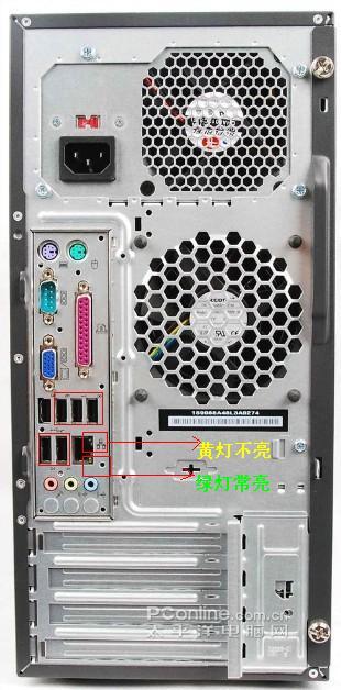 绿灯亮表示连通,黄灯表示传输,两种可能:一无数据传输,二网卡有问题!