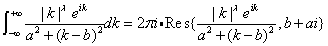 如图的积分,这个积分里面含有绝对值,我当成复数的模来处理,用留数定理计算,积分选择的围道是实轴(-R,R),然后是在上半复平面以R为半径的半圆,组成闭合路径,最后R趋于无穷。请问这样的计算方法有没有问题,如果有,应该怎么计算,谢谢。注:这里的参数1<λ <2,a,b>0。 [ Last edited by touchingdizi on 2012-7-4 at 09:42 ] |