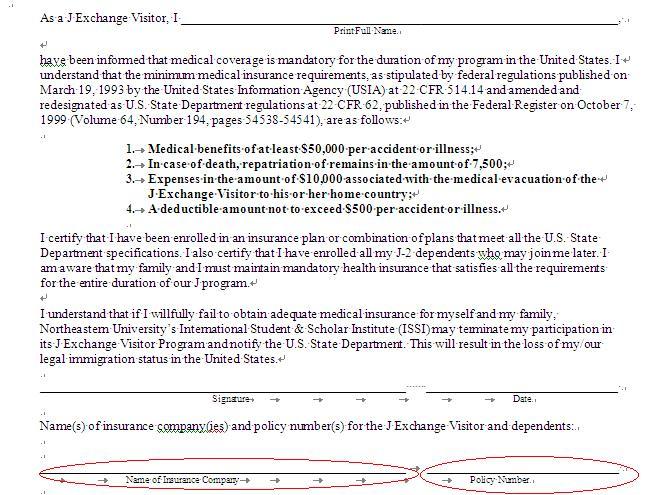 各位,外导的小蜜发来的保单让我填写,是不是说我必须在到美国之前就买好保险,还是说只是让我做个保证愿意买保险呢?我画圈的地方是填保单号吗?policy number是什么?