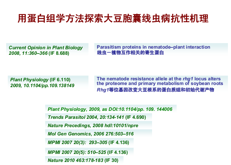 中国农科院作物所邱丽娟研究员 用蛋白组学方法探索大豆胞囊线虫病抗性机理