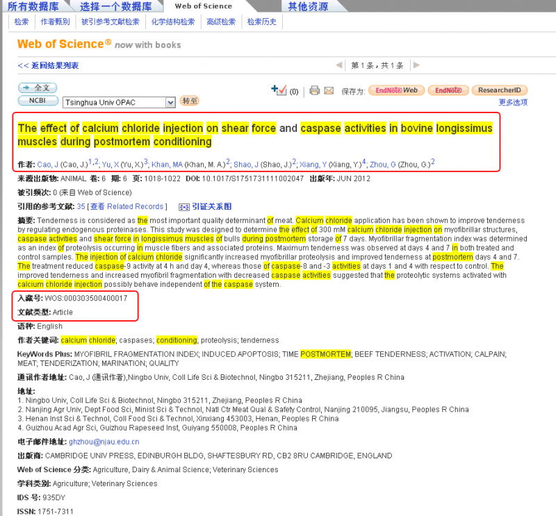 The effect of calcium chloride injection on shear force and caspase activities in bovine longissimus muscles during postmortem conditioning. Cao J, Yu X, Khan MA, Shao J, Xiang Y, Zhou G. Volume 6, Issue 06, June 2012, pp 1018-1022 [ Last edited by meizhou on 2012-7-6 at 12:22 ] |