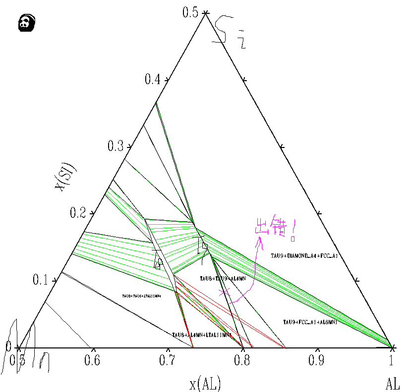 请问各位大虾,计算三元相图时局部地方的相关系和实验相图不相符,该如何处理? 说具体点就是:我的两个三元化合物τ8,τ9应该和al6mn有个三相区,但是却是al4mn,al6mn,τ9的三相区(这个和实验结果不符),请问如何调整三元相的参数?如下图描述: 非常急,跪求释疑!!! ![]() ![]() 问题说明 |