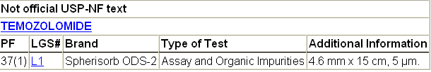 大家谁有USP35,帮忙查一下替莫唑胺(Temozolomide)的质量标准!先谢谢了。