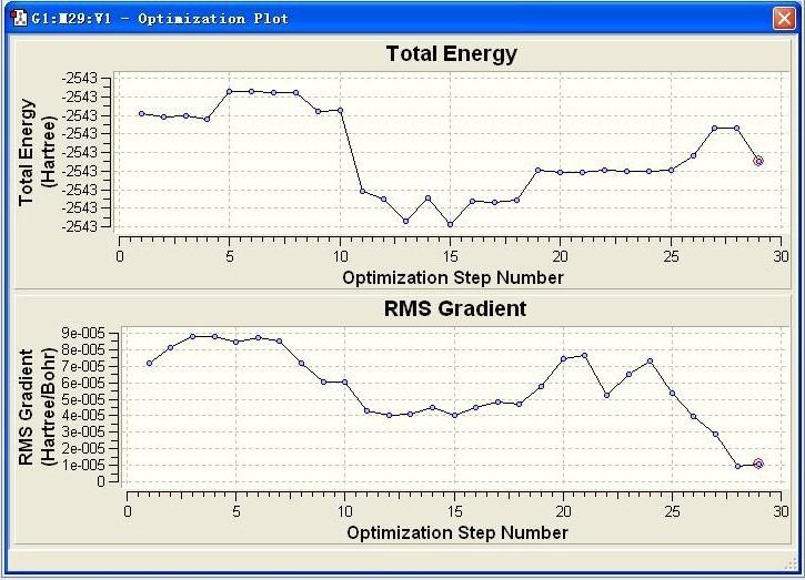 你是要得到那个震荡的图吗 ?? 自己没做出过那个图是吧!! 那个是优化就可以看见的, 比如你优化一个结构,得到输出文件1.log 打开高斯view---file---open----找到1.log----注意,把下面方框里的钩打上----ok----这不就打开了吗能看到结构了吧----再点result----optimization---- 好了 曲线出来了 够详细吗 这个总能量曲线说的就是 优化过程中 每一步的能量 如果震荡了 会造成优化不出来 就得适当调节了 |
