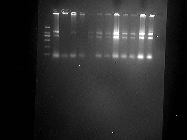 PCR电泳图怎么会这样?各位帮忙分析一下吧