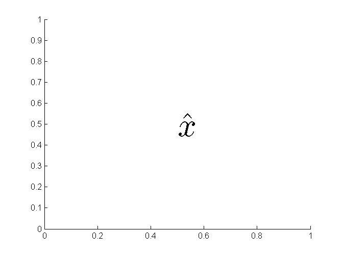我的matlab 2010b 可以的 >> figure >> mytexstr = '$\hat{x}$'; h = text('string',mytexstr,... 'interpreter','latex',... 'fontsize',40,... 'units','norm',... 'pos',[.5 .5]); >> |