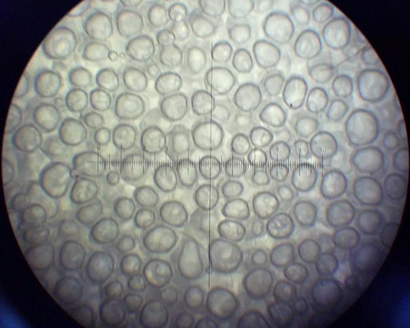 如何用ImagePro-Plus计算泡孔的平均半径和数量? 图中气泡中间和气泡周围的颜色是一样的,该怎么计算,求高人指点! |