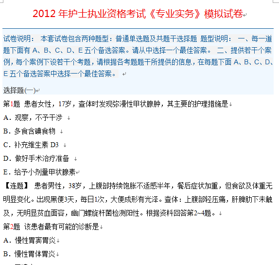 【习题资源】2012年护士执业资格考试模拟试卷及答案