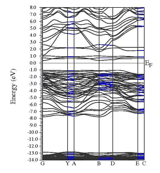 1. 以上是我两次算同一个结构的得到的能带图。 为什么一个会是彩色的, 一个是灰蓝的? 2.如果我想知道dx2-y2或者dz2的能级对应的能带。 怎么看出来? UG里面的“Bandstructure with band character plotting/full lines”的办法我试了试, 不行…… 求高手援助…… |