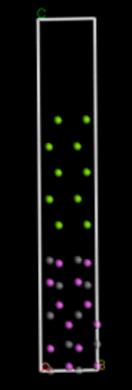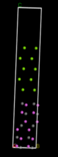 但是本人在构建过程中不知道怎么样去调整界面上下的原子以实现两种堆垛?本人尝试了求得原子间的相对坐标后整体移动但是得到的结果与文献图相差很远(界面构建好之后加入真空层,移动的很多原子都跑到了晶格的外面)感觉方法不对,还请高手指点,谢谢!!!界面两边的切面如下图所示: