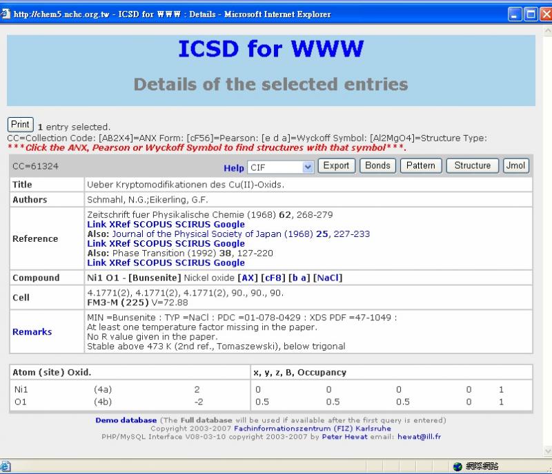 实验需要用到氯化亚铁FeCl2的一些晶体方面的参数,如下图所示。不过我在这个网站上没能查到。哪位好心人如能提供,将不胜感激。需要如下图中的cell,Atom (site)Oxid.和x,y,z,B,Occupancy三项数据。 这一方面自己实在是不懂,拜托各位虫友了! [ 来自科研家族 纳米技术 ] |