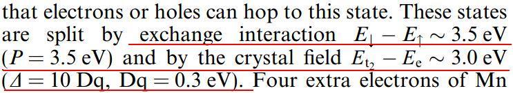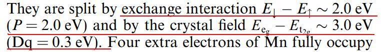如何从DOS图中读出exchange interaction和crystal field能量差。