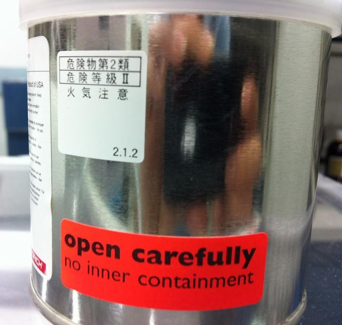 我从阿尔法买的是装在金属易拉罐里,晃了晃感觉里面是干粉,不是水的,这是不是很容易着火啊