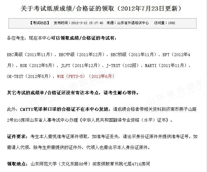 我是山东济南的考生,今天早上刚去山东师范大学拿的,各位可要多关注考点网站啊!我就是无意中才发现的,这次教育部办事效率很高嘛,祝各位亲们好运。 友情提示:听说成绩和证书一年内必须领取,否则可能统一销毁,那样的话就不好了 ![]() 最后散金币散金币啦庆祝一下! |