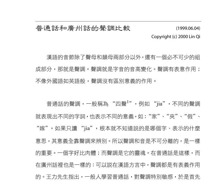 《广州话、普通话的声调比较》