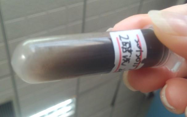 本人用多元醇高温法制备了水溶性的Fe3O4,看起来在水中的分散性挺好的,但仔细看的话底部会有一些小颗粒,请问这属于正常现象吗?下面是附图