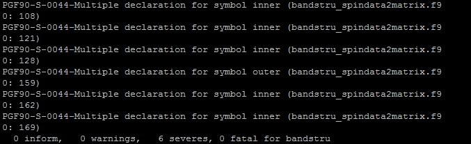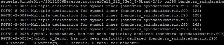 第一个和第二个程序中的 inner 和 outer 是循环的名称,在一个程序中,这些名称不应该是重复的。所以,你改一下就好了。 第一个程序中的 bandstdown 没有定义,它应该是 bandstdw 的误写。另外 n_fermi 没有定义…… 其实你的那个错误提示中写得很清楚…… |