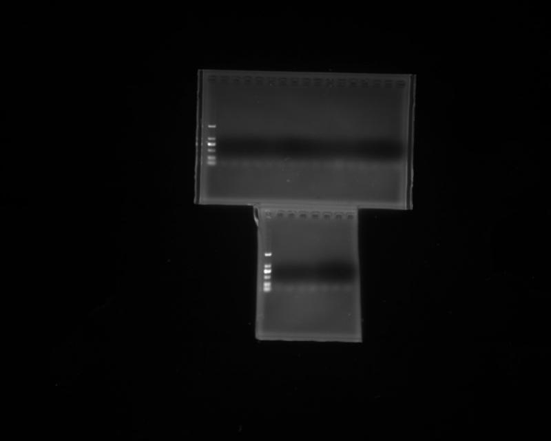 做的污泥DNA提取,用的Mobio的强力土壤提取试剂盒,之前在海洋三所用的一模一样的,凝胶电泳显示提取的DNA非常亮。但是回北京自己实验室再做,结果就不行了,凝胶图显示DNA跑的整个泳道都是,PCR也P不出来。我上图,大家帮忙分析分析啊?我提2遍了都不行啊 DNA凝胶图 PCR凝胶图,V3引物,DL2000 marker |