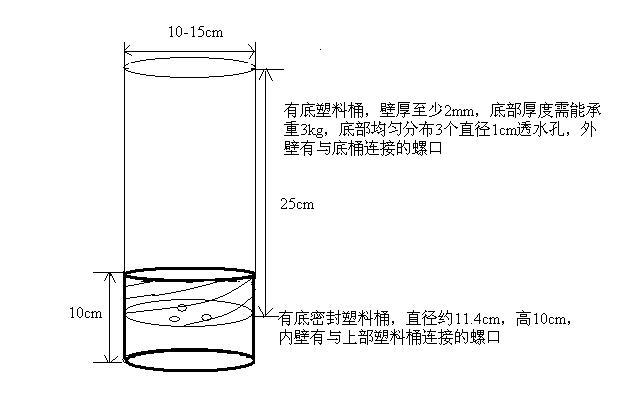 要做盆钵试验,我们打算用圆柱形的塑料桶,底部有孔,下面可以再套一个可以接淋溶水的塑料筒子,比例比较不常见(附件里有示意图),市面上没看到有卖的,不知道各位虫友用的时候从哪里买的?或者到哪定做? 看到许多人用瓦氏盆、米氏盆,在网上搜也没看到哪里有卖的,有没有知道的虫友告知一声? |