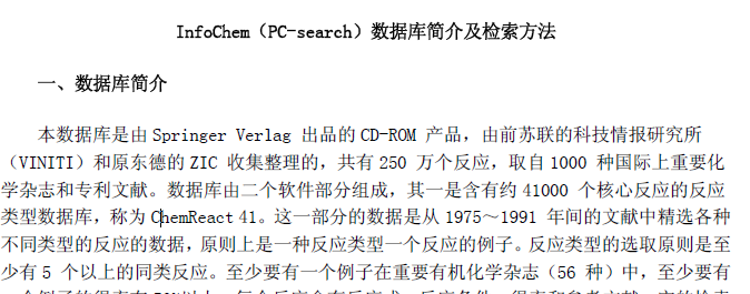 InfoChem(PC-search)数据库简介及检索方法